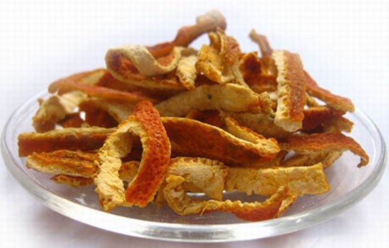 用料:鲜橘皮30克,水600毫升,白糖少许。