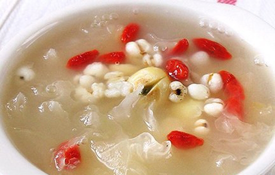 材料:莲子2两,莲藕1斤,百合5钱,圆肉5钱。