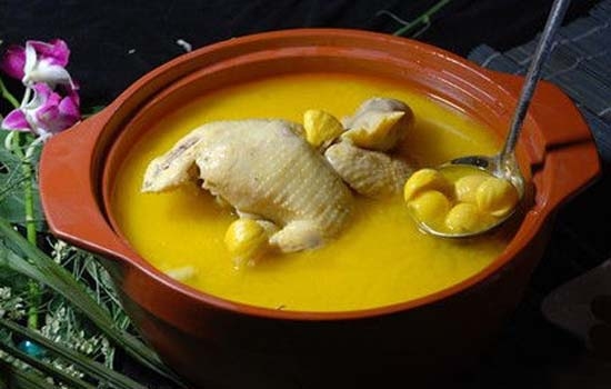 材料: 鸡一只,去壳板栗250克,红枣10克,生姜适量。