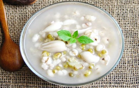 做法:先将绿豆和米一起加水煮熟,再加入百合同煮片刻。食用前根据个人口味加适量白糖调味。