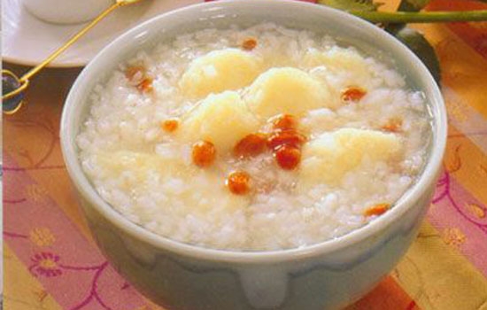 做法:将洗净的药材及粳米一同放进煲内,加清水1000ml,煲至粳米开,粥变黏稠,调味即成。
