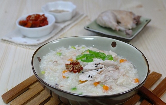 取母鸡1只,去毛,剖洗干净,加适量清水煎煮成浓汤备用。取原汁鸡汤100克,加洗净粳米100克,加适量清水煮粥,大火煮沸,小火熬稠即可。