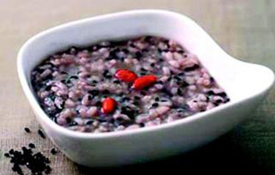 做法:取黑芝麻,炒焦研碎,和大米同煮粥,适量加盐或糖,作夜宵食用。