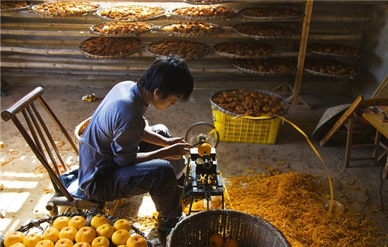 ⑤自第一次翻动柿子后每隔三到四天再翻动一次,翻动时要捏饼;