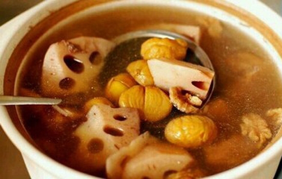 材料:核桃2两,莲藕1斤,莲子2两,栗子8两,陈皮1片,红枣10粒,生姜一块、植物油、盐、蘑菇精