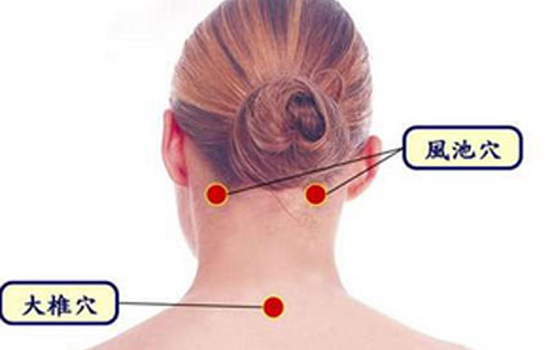 取穴:低头时,摸到颈后最突起的高骨,在这块高骨的下方就是大椎穴。