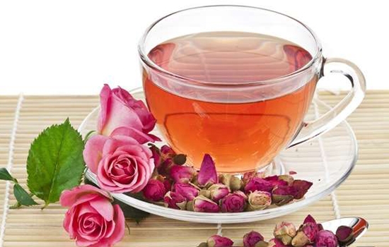 1.玫瑰花、蚕豆花分别洗净,沥干水分,放入茶杯中,以沸水冲泡。