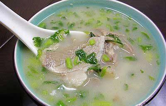 材料:枸杞叶250g,羊肾1只,羊肉60g,葱白1000g,细盐少许,糯米60g。