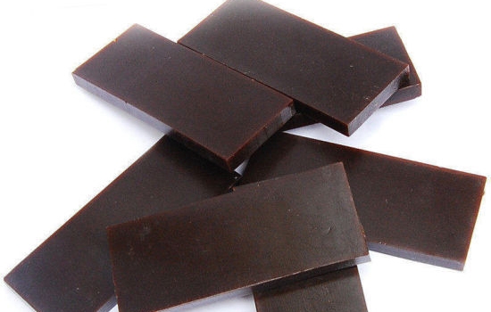 阿胶呈整齐的方形块状,通常长约3厘米,宽约3厘米,厚约0.5~0.7厘米。