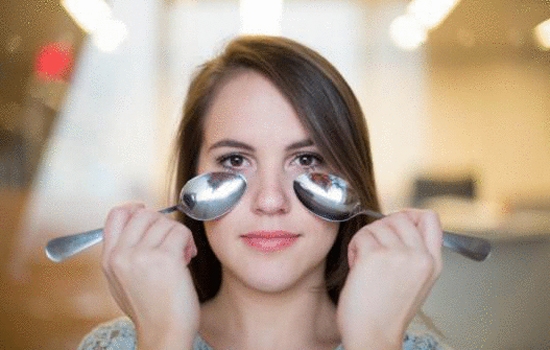将金属勺子冷冻后,用手握住勺把,将食指放于勺心,用勺子背部凸出位置贴在左右两侧鬓角处,转圈按摩。待勺子变热后,再换两把冰凉的勺子接着重复。做完后会使两眼感觉轻松、炯炯有神,对于提高视力很有帮助。