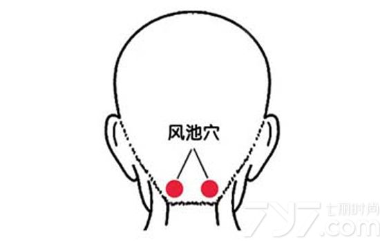 风池位置:风池穴位于后颈部头骨下,两条大筋外缘凹陷中,约与耳垂齐平。