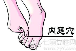 1点按内庭穴