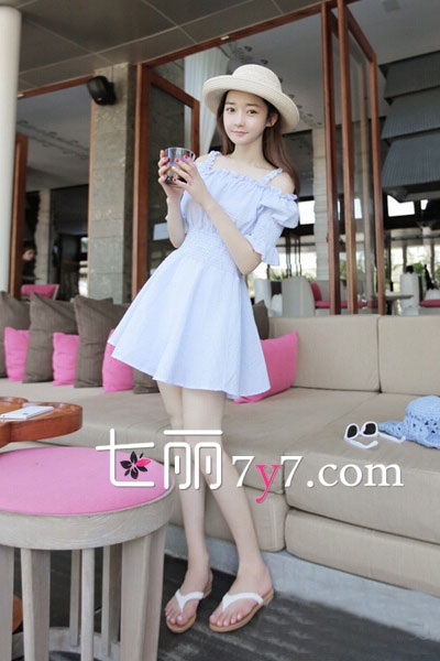 淡蓝色本就给人一种很干净清纯的感觉,而这款高腰的设计以及泡泡袖的风格,特别是这种颜色也很衬托肤色,带上草帽,如果是有恋人的妹子,绝对会让你在七夕约会时增加超多的美丽!