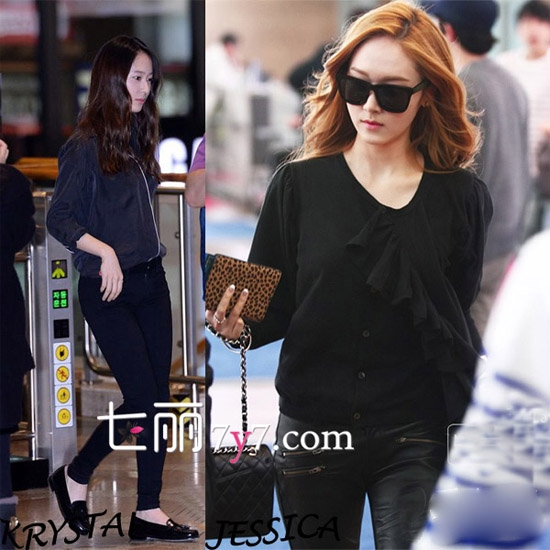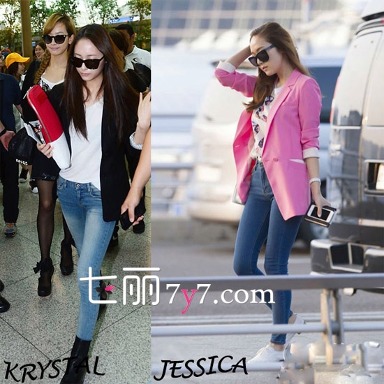 少女时代Jessica与f(x)Krystal机场街拍 郑氏姐妹服饰大PK