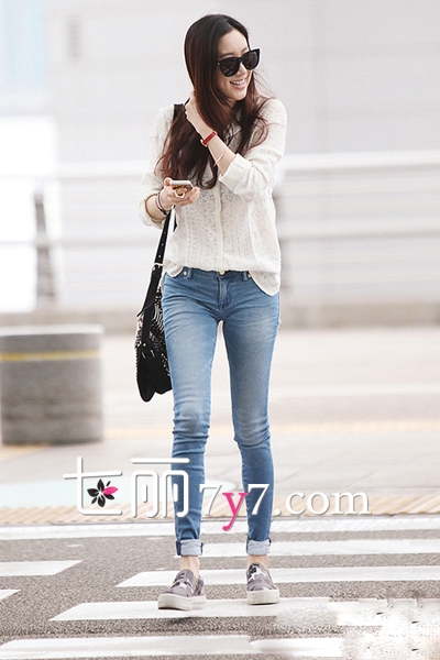 韩国明星机场街拍合辑 Jessica衬衫美搭示范look