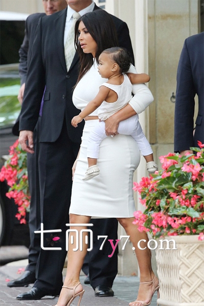 当地时间25日,金·卡戴珊 (Kim Kardashian) 抱着女儿诺丝·韦斯特 (North West) 在贝弗利山庄出街。身着白色套装的她,将前凸后翘的身材展现的淋漓尽致,微露脐、露肩的设计,高贵中带着些许小性感。将爱女诺丝·韦斯特 (North West)也装扮一身白色搭配,显然与爱女装亲子装。宝贝在妈妈怀里非常听话,好奇四周的事物,到处张望,表情很是呆萌。