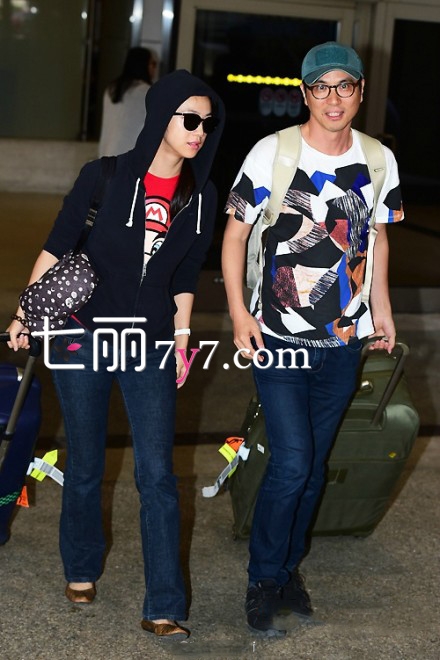 时尚点评:正所谓绿叶配红花,金泰勇穿着单调一点,白色的T恤,不规则的印花,衬托妻子汤唯的气质,两人面对镜头开心的笑着,金泰勇要让全世界知道,你的笑容被他承包了。
