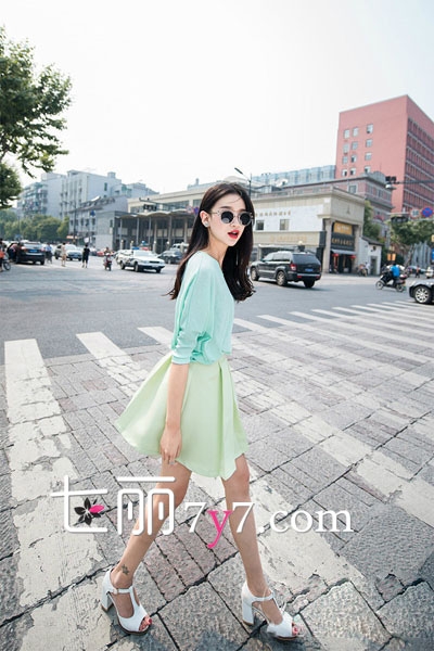 非常清凉的色调搭配,给人呈现出不一样的视觉效果。淡绿色的连衣裙清新淡雅,外搭一件薄荷绿针织开衫,非常衬肤色。一身清爽的色调造型清新甜美感十足,配上复古的红唇妆。气场瞬间爆棚。