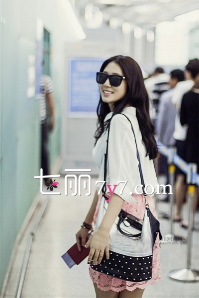 朴信惠机场街拍秀搭配 甜美裙装诠释韩系清新范儿