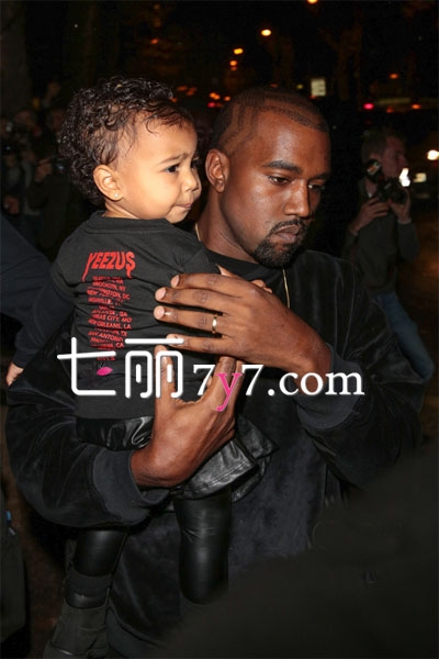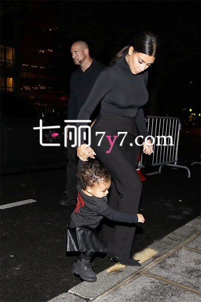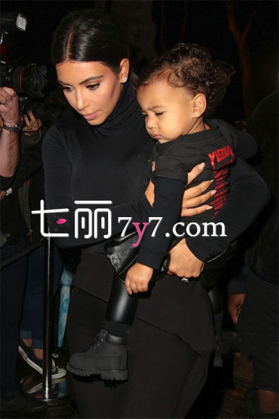 金·卡戴珊巴黎时装周街拍 一家三口全黑造型温馨出镜