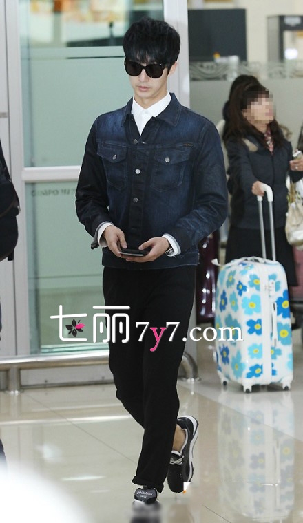 快来看男神欧巴 男星金亨俊牛仔外套机场街拍