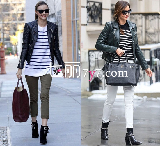 时髦有型又百搭的机车皮衣外套是很多潮人、明星们的最爱,米兰达·可儿就是其中的一个,机车皮衣是她的秋冬季街拍中出镜率最高的单品,由此可见对其的喜爱程度,下面就一起来学习街拍女王的皮衣搭配秘诀吧。