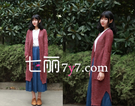 街拍欣赏:日系森女系纯色长款针织衫,搭配白色娃娃领衬衫,衬托出清纯的容颜。日式的装扮最喜欢用长裙装点了,显得女孩子更加有修养,也能衬托出气质。