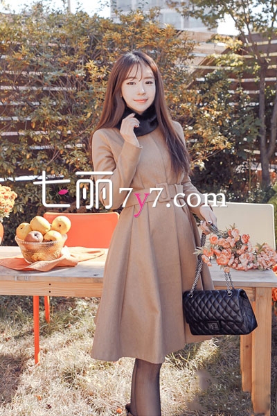 驼色毛呢大衣外套,经典优雅。高束腰的处理,很显腰身,大衣下摆设计成裙摆的款式,时髦而高贵,并散发出一种含蓄的都市感。搭配黑丝短靴,轻盈柔美。黑色链条包的加入,打造出名媛淑女范儿。