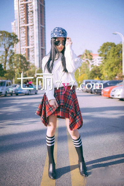 白色套头毛衣,经典百搭,给人清新温婉的感觉。搭配英伦风的红色格子短裙,不规则的裙摆剪裁,个性十足,设计感很强。条纹高筒袜与黑色皮鞋的加入,减龄扮嫩,整套搭配轻松打造出混搭学院风格,美腻了。
