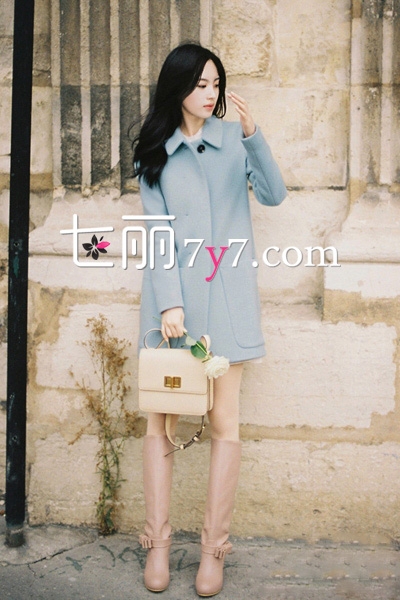 浅蓝色毛呢大衣,淡淡的色调衬托出MM清新淡雅的气质,大大的口袋设计,可爱又俏皮。简约大气的款式,优雅又浪漫,给人呈现出宁静唯美的感觉。搭配上一双裸粉色高筒长靴,甜美知性,化身为温柔可人的韩式淑女,整体造型美得让人心动。