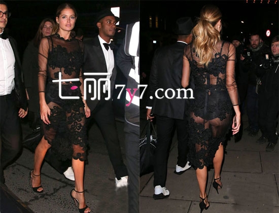 杜晨·科洛斯黑色蕾丝透视裙现身,蕾丝加上轻薄网纱,看上去非常性感迷人,恰到好处的遮挡了一部分,若隐若现,可谓是诱惑力十足啊。背面半露的臀部让人流鼻血,这种透视装也只有超模们能hold住了。