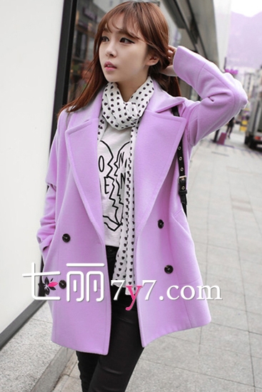 紫色毛呢大衣
