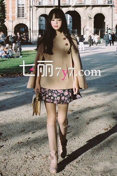 韩国美女冬季街拍图片 斗篷式呢子大衣成新宠