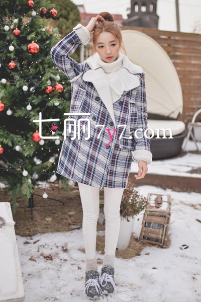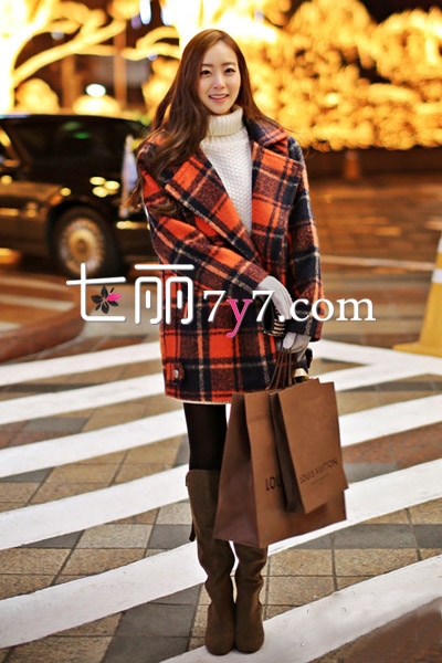 国内长腿美女冬季街拍 格子大衣诠释韩系小清新
