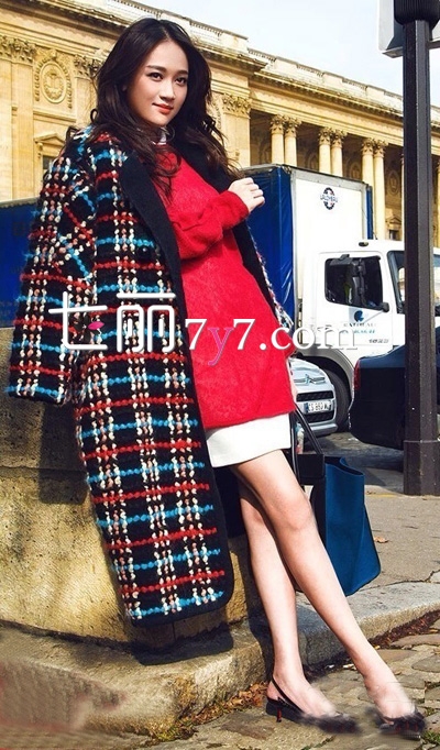 格子长款毛呢大衣外套,黑底配上醒目的蓝红彩色条纹,美腻了,廓形更温暖更具气场。配上红色中长毛衣和白色短裙,与大衣形成丰富的层次感,而且内外搭配颜色也呼应的很好,穿出时尚优雅的造型。