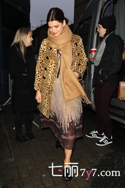 豹纹冬季最流行元素,将其融入到外套中则更显拉风,在参加派对穿着豹纹大衣,让简单的服饰立刻拥有了强大的气场,内搭一件简单的绿色连衣裙,再混搭一双同色系的高跟短靴,完美呈现出女人的性感魅力,而用白色的手袋做装饰,时尚范呼之欲出。