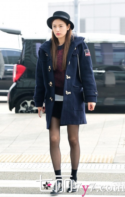 近日出现在机场的nana林珍娜,身穿蓝色学院风大衣外套,内搭一件红黑的打底衫,十分甜美时尚,而即使是在寒冷的冬季,她还是选择露出细长双腿的学院风短打Look,一双黑色将美腿紧紧包裹住,十分简约甜美。