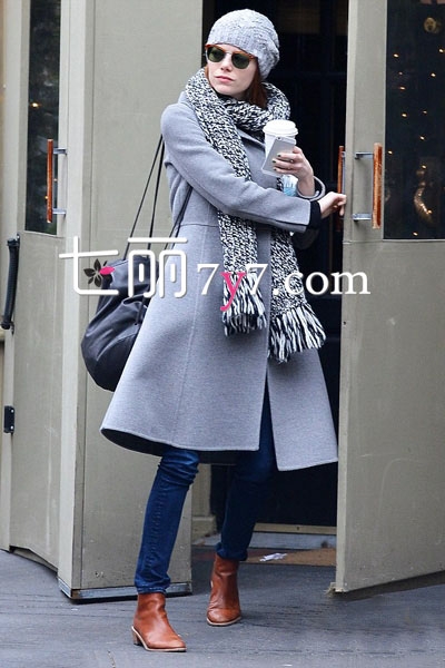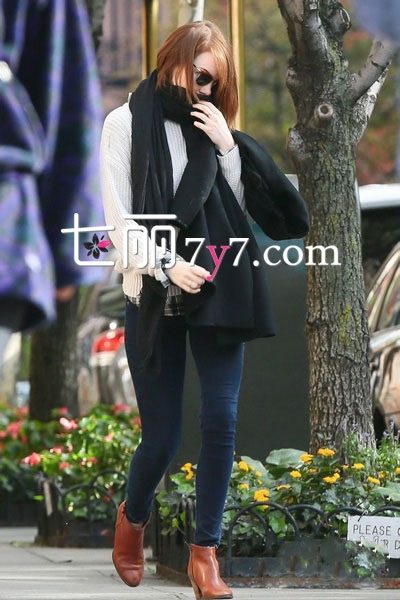 2014欧美好莱坞明星街拍 艾玛·斯通玩转围巾潮搭