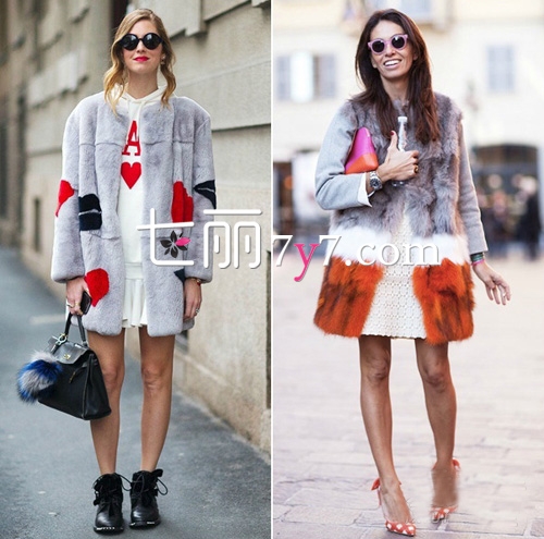 看惯了经典的纯色皮草,不妨为自己购买一件今年非常流行的印花皮草外套,可爱的图案潮范儿十足,配上小裙子更可爱了,不过要记住,长度不能过膝,不然就不能凸显美腿了