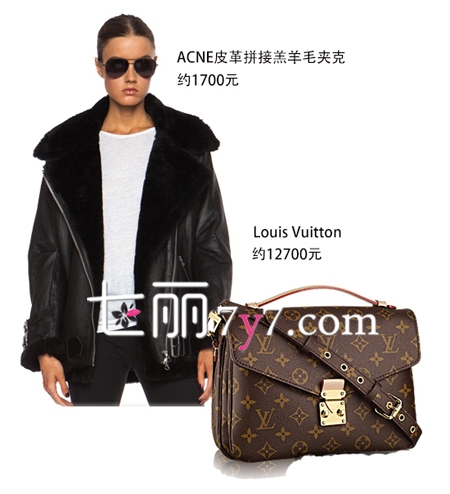 搭配要点:羔羊毛夹克+黑色紧身裤+镜面圆框墨镜+毛线帽