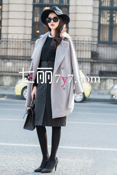 国内高街的MM们,如今的穿衣品位丝毫不输欧美街拍达人哦。黑色毛衣搭配高腰直筒中长裙,有型有款,一排纽扣的设计,彻底打破深色的沉闷感和单调。肩披浅色大衣,看似简单的单品,细节处却不失个性。