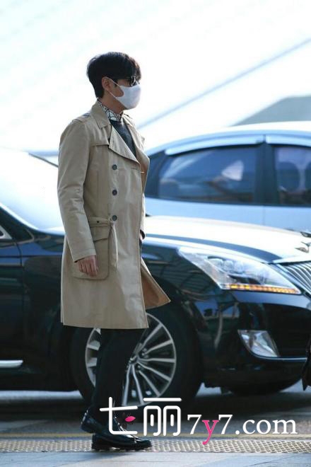 T.O.P上身的这款Double-Breasted Trench风衣来自Burberry London,长款的卡其色双排扣风衣可以说是不会过时的经典,T.O.P把这件风衣穿得稳重又不失时尚感,T.O.P用来内搭的黑色毛衣+印花衬衫其实已经出现过好几次了,但是每次T.O.P都用不同的大衣或是风衣搭配出了不同的感觉。下搭黑色西装长裤和黑色皮鞋,仿佛走进的不是机场,而是哪家世界500强公司的总裁办公室。