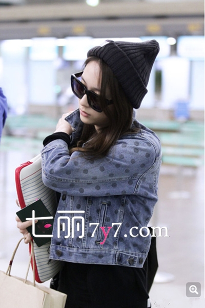 韩国毛线针织尖帽是今年韩国最流行的帽子,好看又保暖,黑色墨是所有明星出行的必备品,也一件不错的装饰品。韩范十足的波点牛仔衣上衣,吸引人眼球,不失街头风格,称Krystal是潮女装扮一点也不会错。