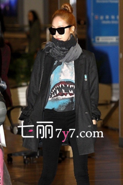 呢子大衣一直以来的韩服里面最受欢迎的一款也是冬日必备服装,Krystal长款妮子大衣内搭简单白色衬衫,简单里外加了几分女性的干练气息。像Krystal这么Fashion的搭配在机场可是难得一见的哟。