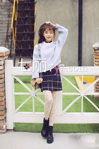 国内长腿美女冬季街拍 格子大衣诠释韩系小清新