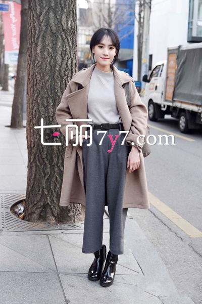 宽松的毛呢,最耐看百搭,不挑身高身材,穿搭也来很时髦显气质。这位韩国MM用大衣搭配灰色毛衣,下穿深灰色西装长裤,系上黑色皮带,硬朗有范儿。一身暗色系的造型配上亮皮短靴,尽显时尚魅力。