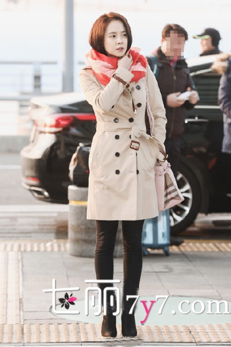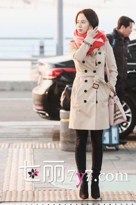 当天出现在机场的宋智孝,身穿春装新款米色风衣,经典简约的款式十分复古,袖子处的皮质设计,凸显出了精致的细节之处,下穿黑色紧身裤,脚踩一双高跟短靴,素颜出镜一路微笑着,而脖间围着的粉色围巾,洋溢着春天的气息,女神的魅力难以掩盖。