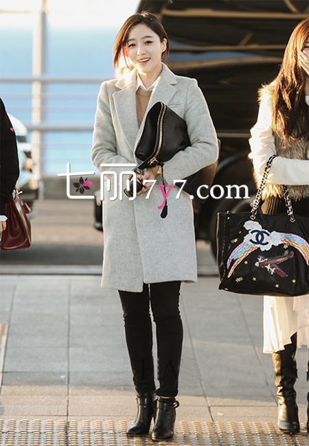 T-ara组合2015最新机场街拍 朴孝敏皮草+长裙仙美迷人