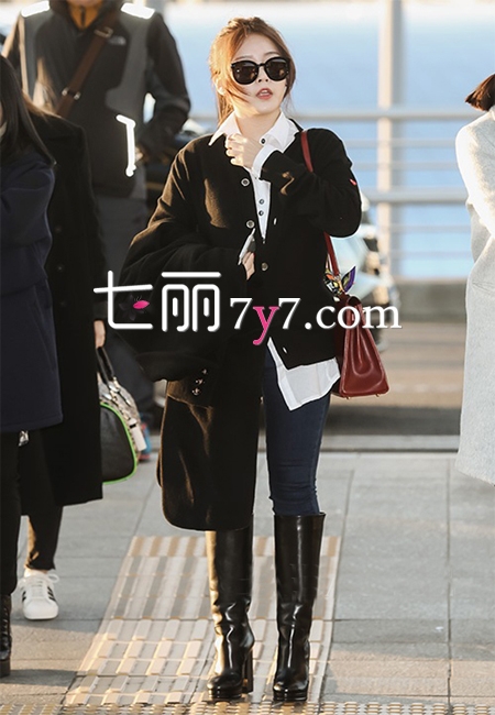 T-ara组合2015最新机场街拍 朴孝敏皮草+长裙仙美迷人