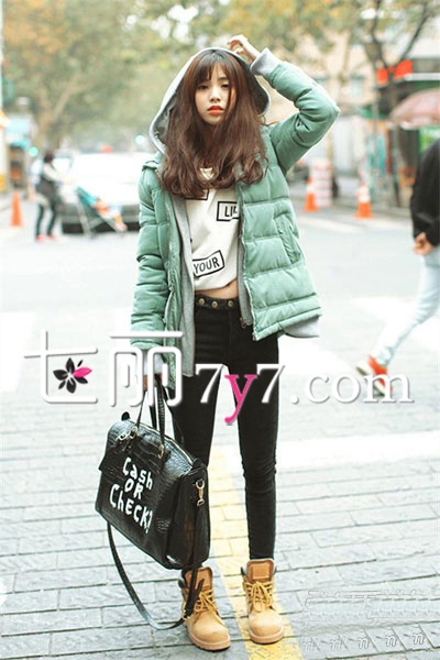 简单大方设计的绿色短款棉服,有着非常典型的时尚休闲风,让女生清新又减龄,内搭白色短款上衣,下穿黑色紧身裤,将身材比例衬托的很修长,完美穿出了女生视觉上的新“高度”。